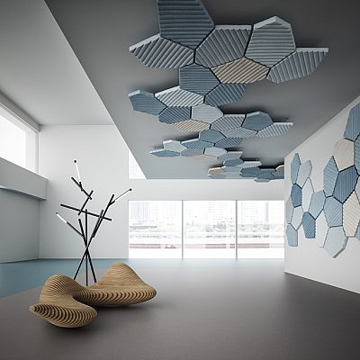 Mogu AcousticsAvailable At the Donghia Materials LibraryMogu Acoustics are grown using a proprietary fungal strain with hemp and cotton waste to create a variety tile shapes and colors. The mycelium tiles have excellent acoustic performance in the medium frequencies (250-1000 hz) and are naturally flame retardant. These tiles can be fixed in place with screws, clips, magnets or organized within FSC-sourced lime wood system called Foresta. Note: These tiles are finished with a low-VOC, heavy-metal free, water-based paint. Per manufacturer, you can request no finish, but this will make the tiles more sensitive to stains and scratches. Mogu is distributed in the US by Habitat Matter. https://habitatmatter.com/mogu/ CategoryAcoustics, MyceliumManufacturerMogu![]() Material composition*Mogu Acoustic tiles are composed of mycelium, hemp shives, cotton, and optional paint finish (water-based, heavy-metal free bicomponent dispersion with low VOC) *As reported by manufacturer *as reported by the manufacturer AVAILABLE SIZINGVaries COLORSVaries CERTIFICATIONS & DISCLOSURES