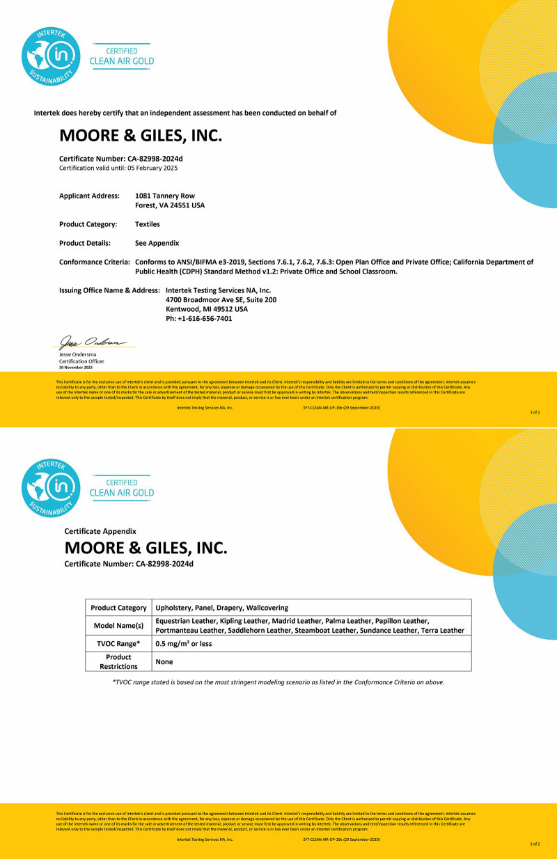 Look for Textiles that meet Low Emission requirements. These may be indicated as being compliant with CDPH Standard Method (01350) or certified through Greenguard Gold or SCS Indoor Advantage Gold.
