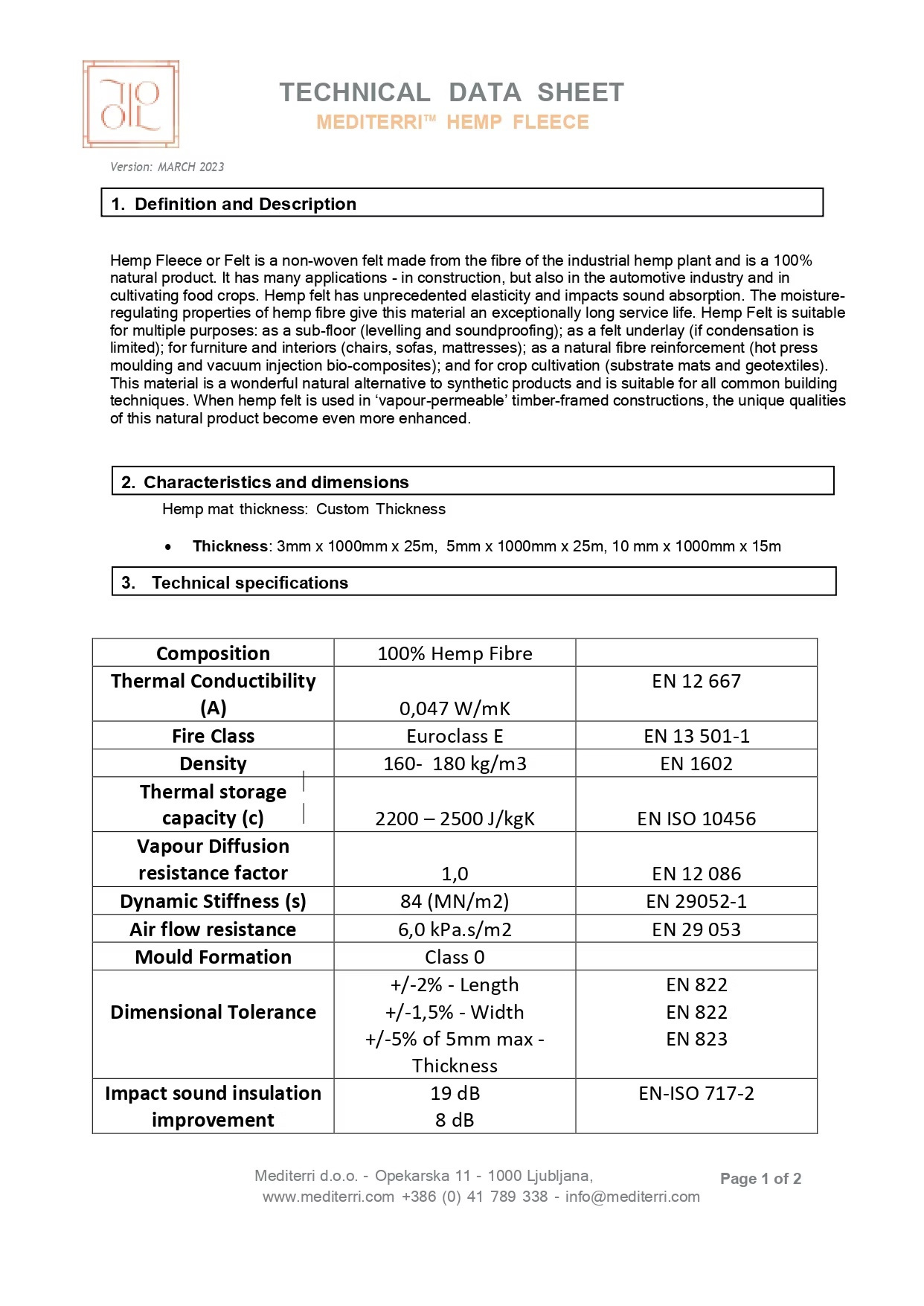 Hemp Fiber Fleece![]() Available in the EUMEDITERRI's Hemp Fiber Fleece underlayment is for parquet, laminate, and flat floors. Made with no binder, the material is heat-insulating and compostable. Available in 3mm, 5mm and 10mm thicknesses and 0.5-3m (19-118in) wide. CategoryUnderlayment / Floor, HempManufacturerMEDITERRI![]() Material composition*100% hemp fiber *as reported by the manufacturer CERTIFICATIONS & DISCLOSURES
