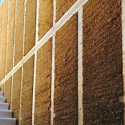 Straw Bale WallsNew Frameworks build prefabricated structural straw panels. The wheat straw is locally sourced from a certified organic farm by NOFA-VT and densely packed at 9lbs/cu.ft. A clay/lime plaster as interior air barrier is a preferable solution. Different air sealing methods can be applied to exteriors, opt for plywood or other options free from petrochemicals. The R-Value is 1.8/inch. CategoryWall Panel, StrawManufacturerNew FrameworksMaterial composition*Wheat Straw, CDX plywood *as reported by the manufacturer CERTIFICATIONS & DISCLOSURES